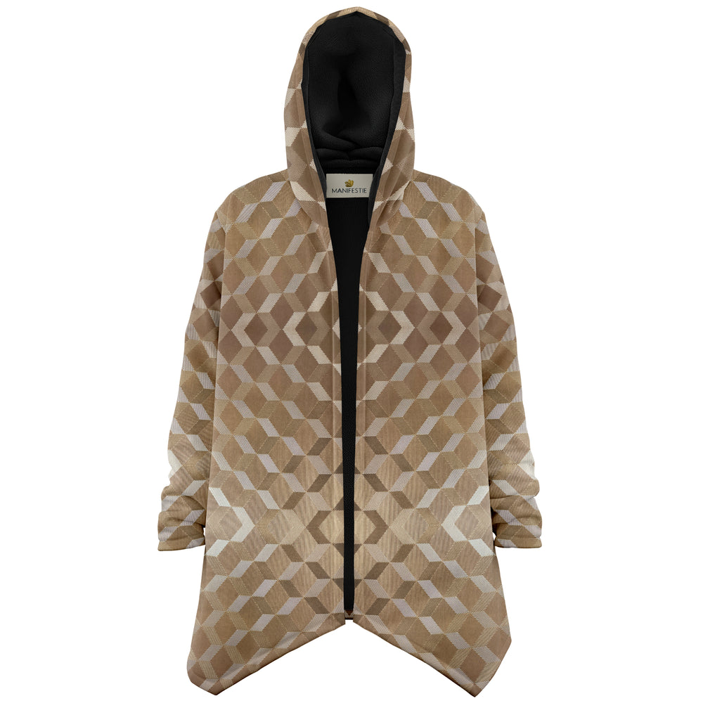 Gold Cube Cuddle Cloak | Unisex Minky Sherpa Lined Hooded Coat | Women and Mens Festival Coat | Mountain Fashion