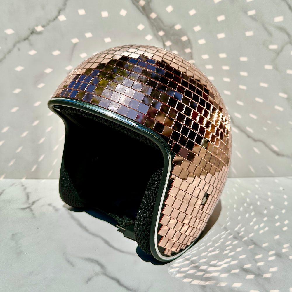 Rose Gold Disco Ball Helmet / Party Hat / Festival Hat / Burning Man Hat / EDC Hat, Rave Hat