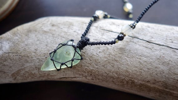 Green Calcite Macrame Necklace | Micro-Macrame | Cleansing Healing Crystal