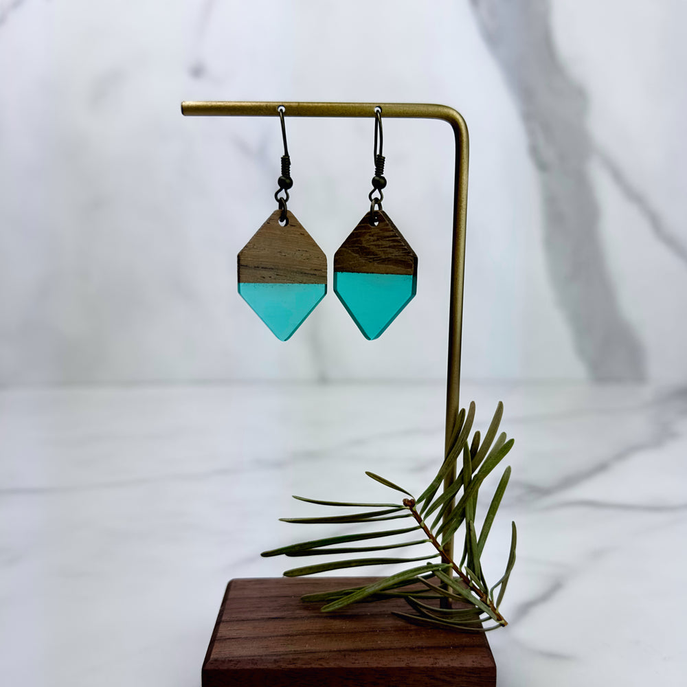 Hexagon Wood + Resin Earrings | Sea Glass Colored Tahoe Blue