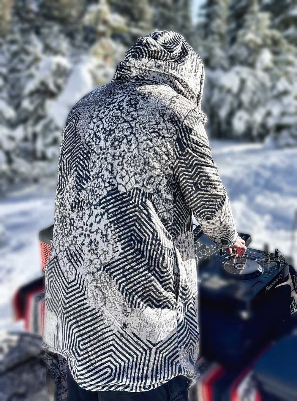 Past and Future Cuddle Cloak | Beige, Brown, Cream | Unisex Minky Sherpa Hooded Coat | Women and Mens Festival Coat | Mountain Fashion