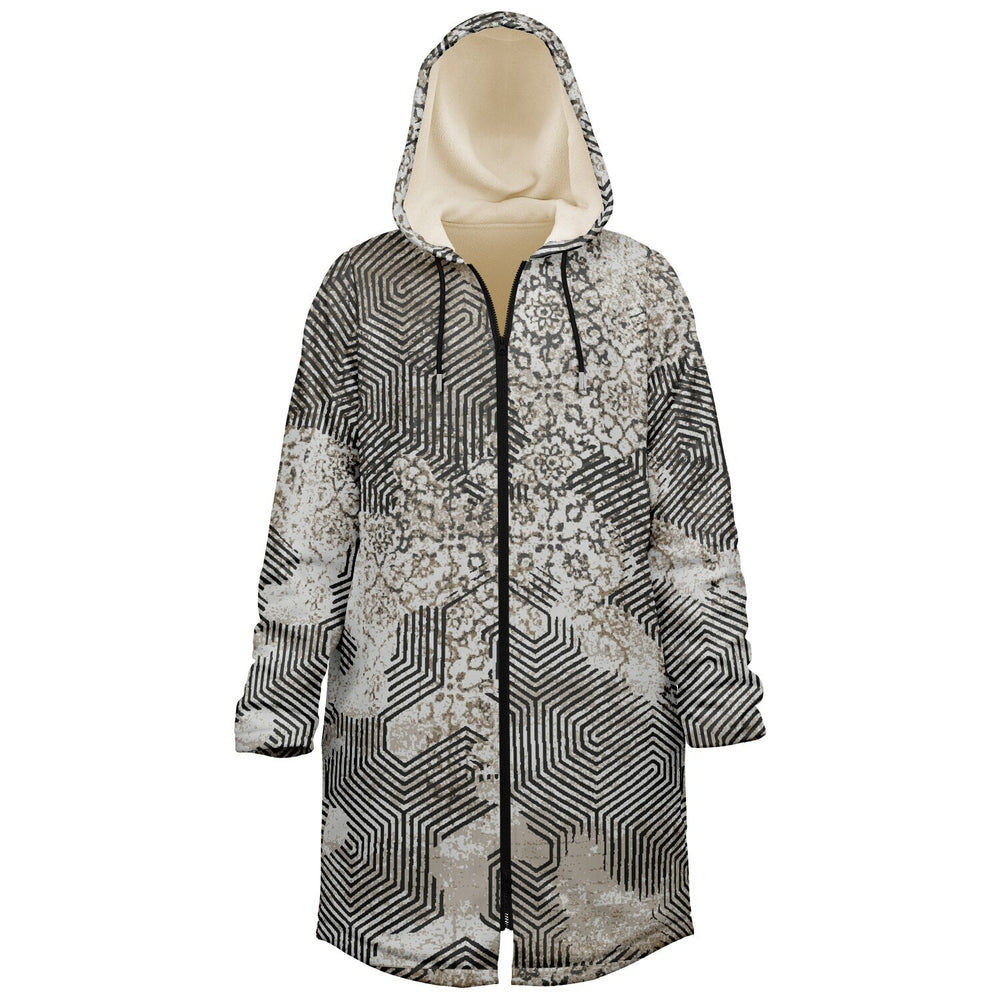 Past and Future Cuddle Coat | Unisex Minky Sherpa Lined Coat with Hood, Zipper and Pockets | Women and Mens Festival Coat | Mountain Fashion