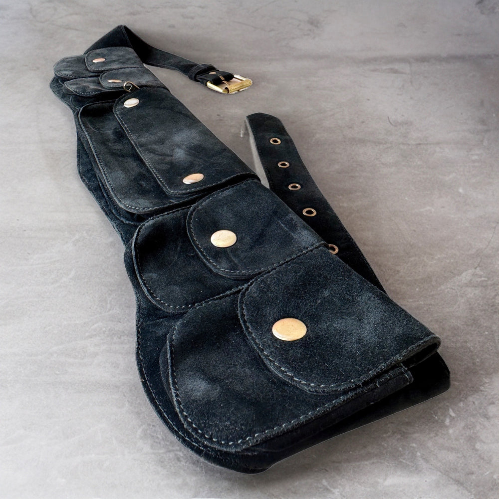 Genuine Leather Pocket Belt | Black Suede, 7 Pocket | money belt, travel belt, festival belt, vendor belt, belt bag, burning man belt