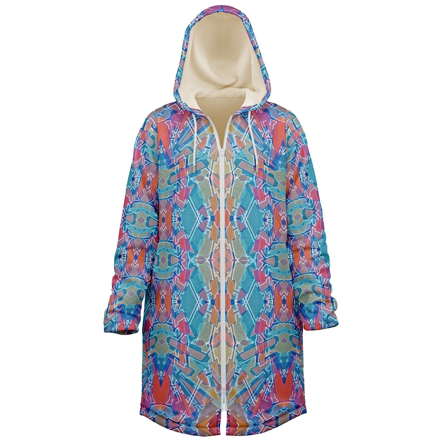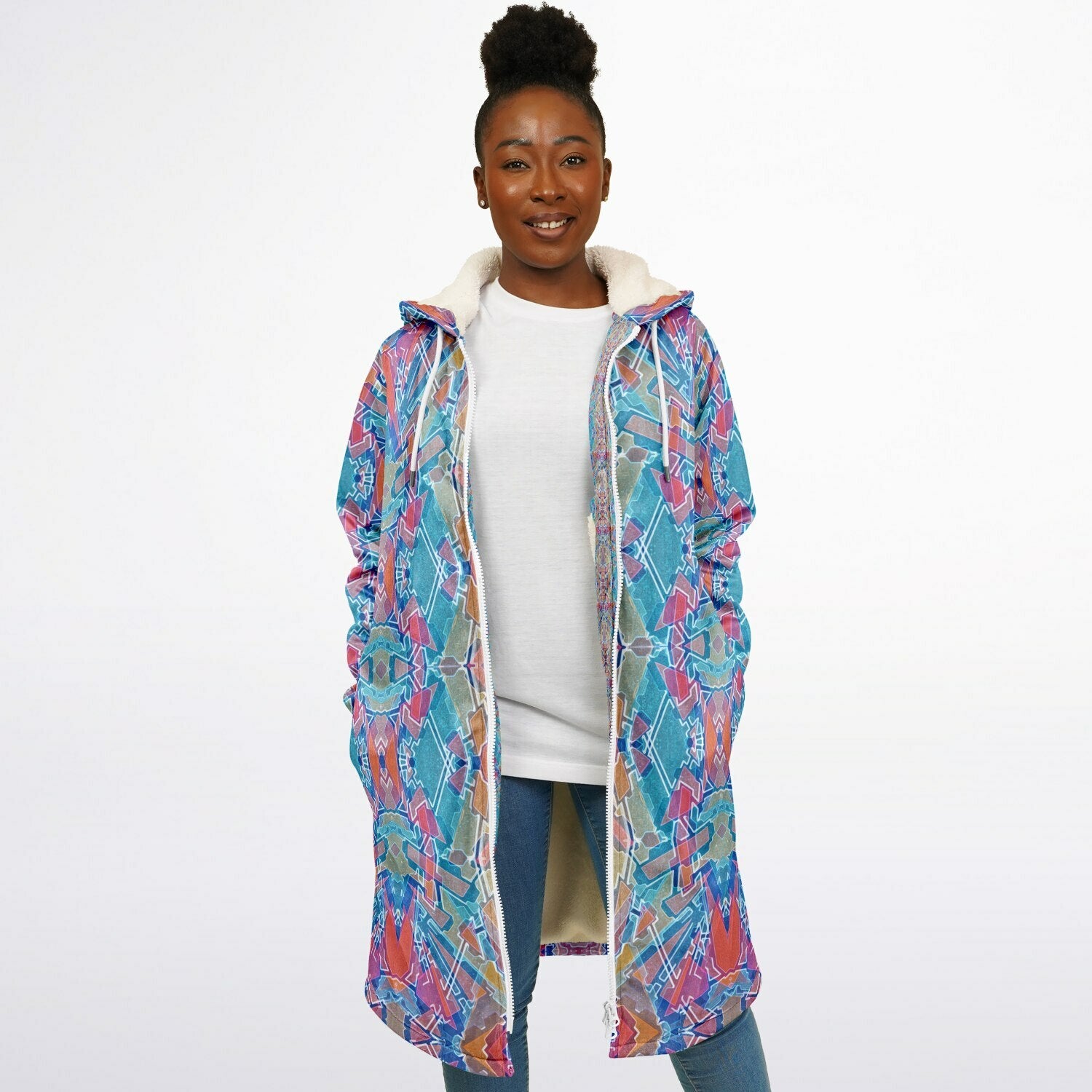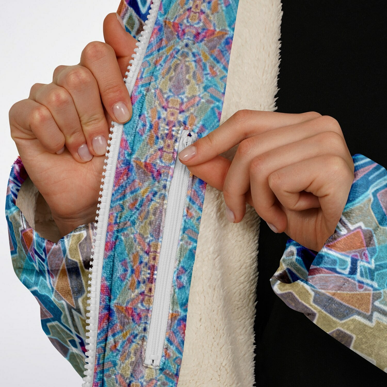 Electric Totem Cuddle Coat | Unisex Minky Sherpa Lined Coat with Hood, Zipper and Pockets | Women and Mens Festival Coat | Mountain Fashion