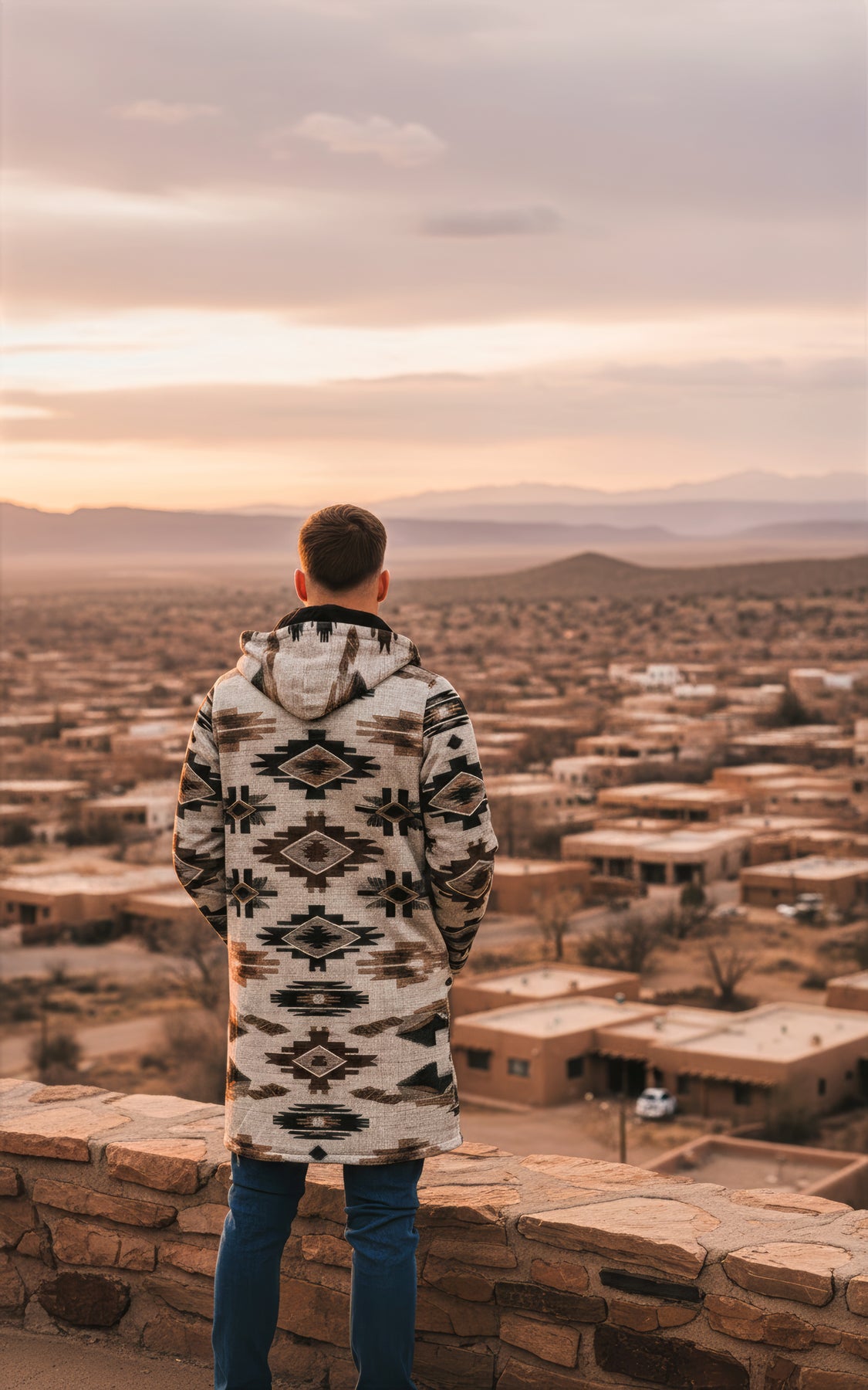 Ganado Tribal Cuddle Coat | Unisex Minky Sherpa Lined Coat with Hood, Zipper and Pockets | Women and Mens Festival Coat | Mountain Fashion