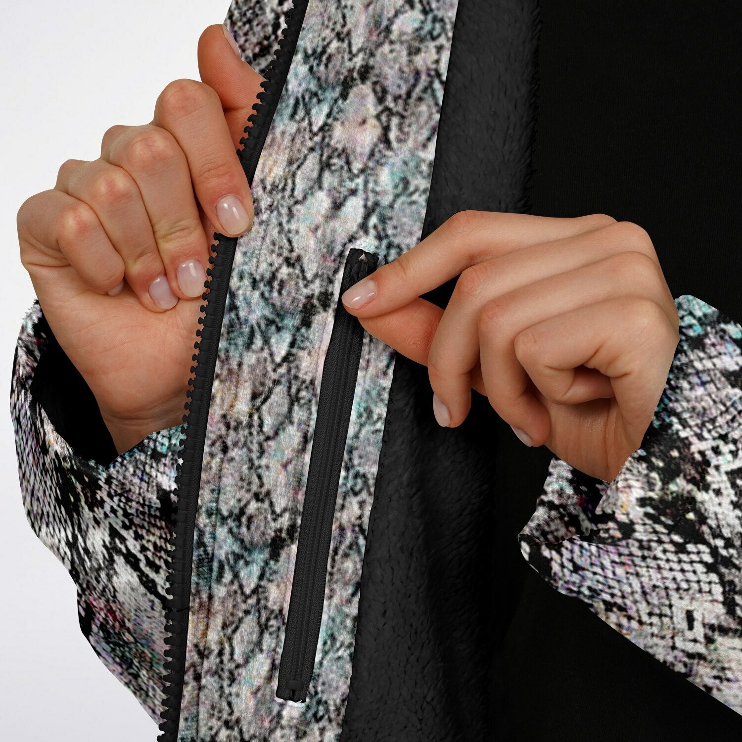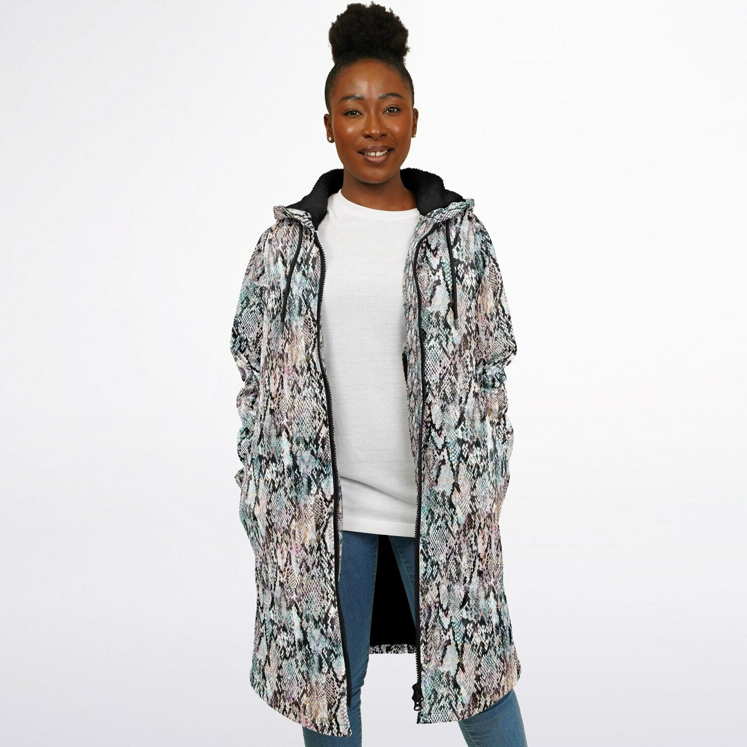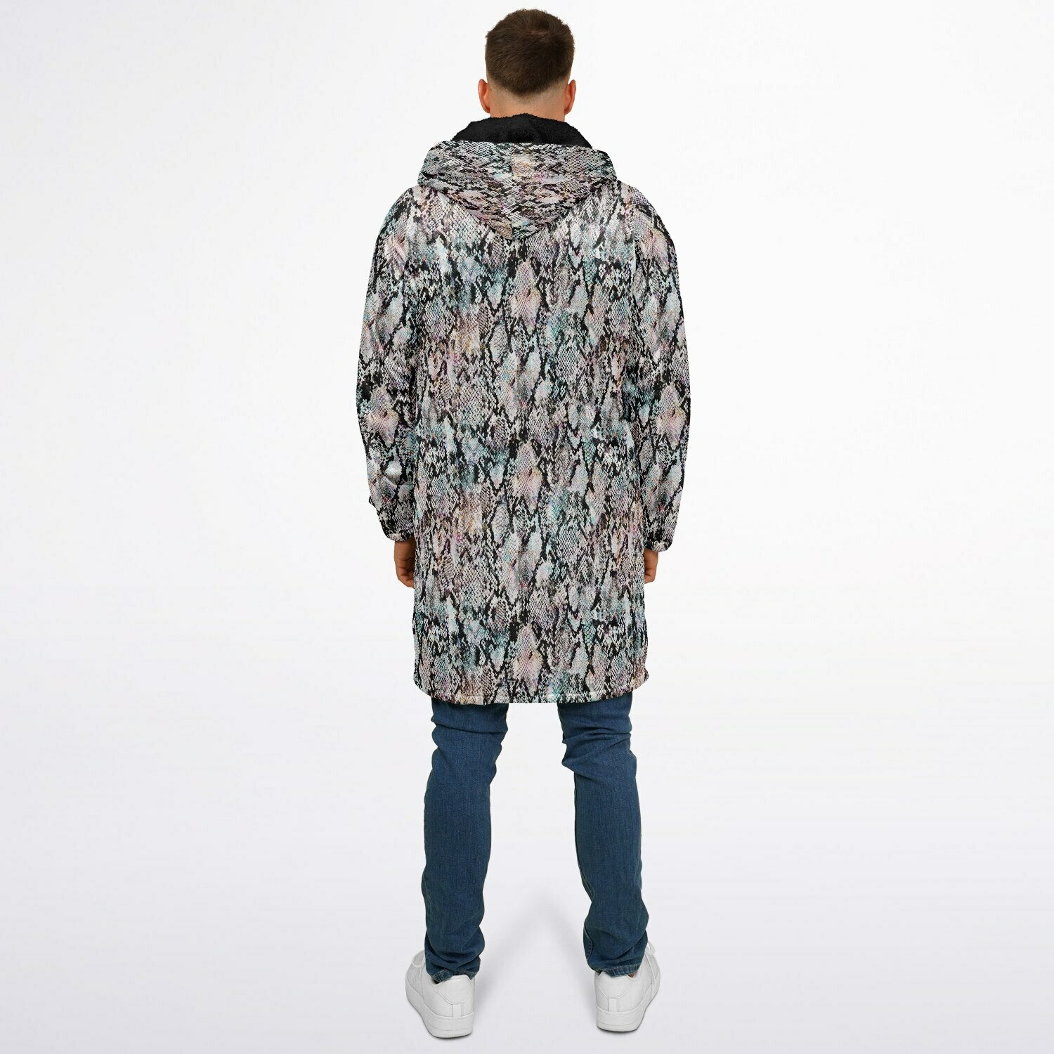 Prism Python Cuddle Coat | Unisex Minky Sherpa Lined Coat with Hood, Zipper and Pockets | Women and Mens Festival Coat | Mountain Fashion