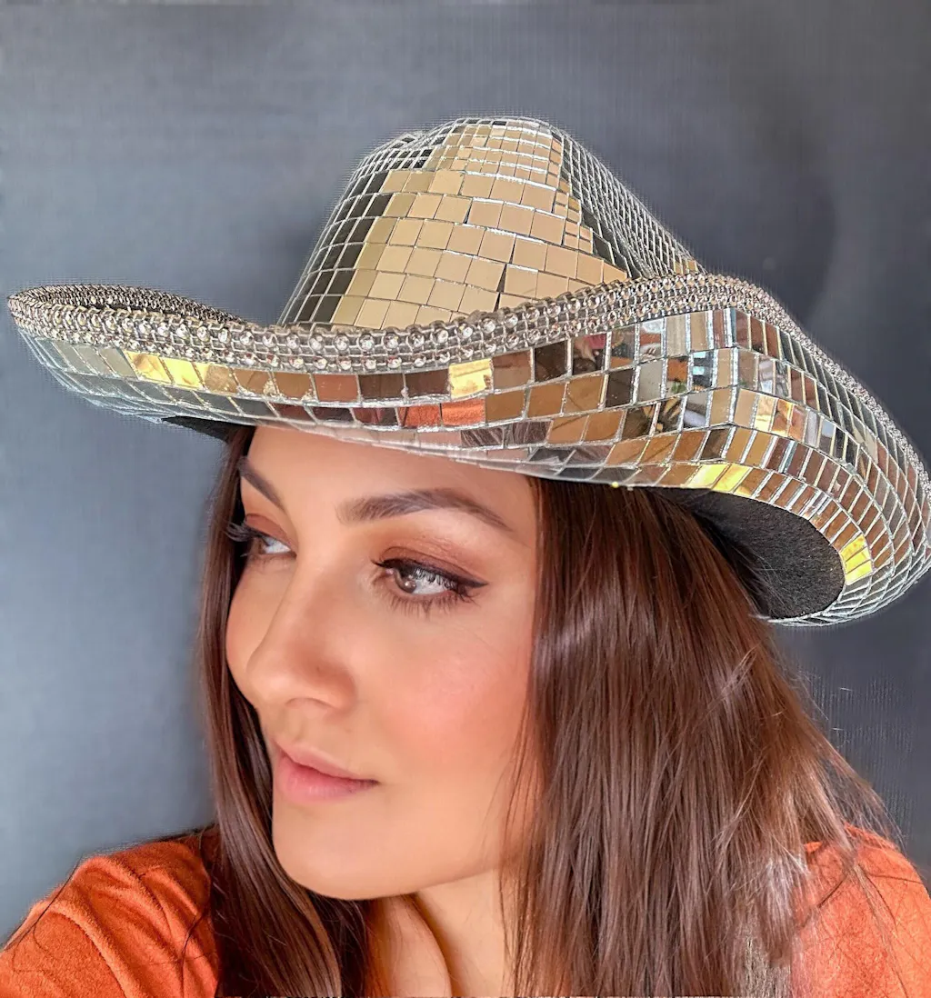 Personalized Gold Rhinestone Hat / Sequin Hat / Party Captain Hat / Festival Hat, Burning Man Rave Hat, Birthday Hat, Custom Hat