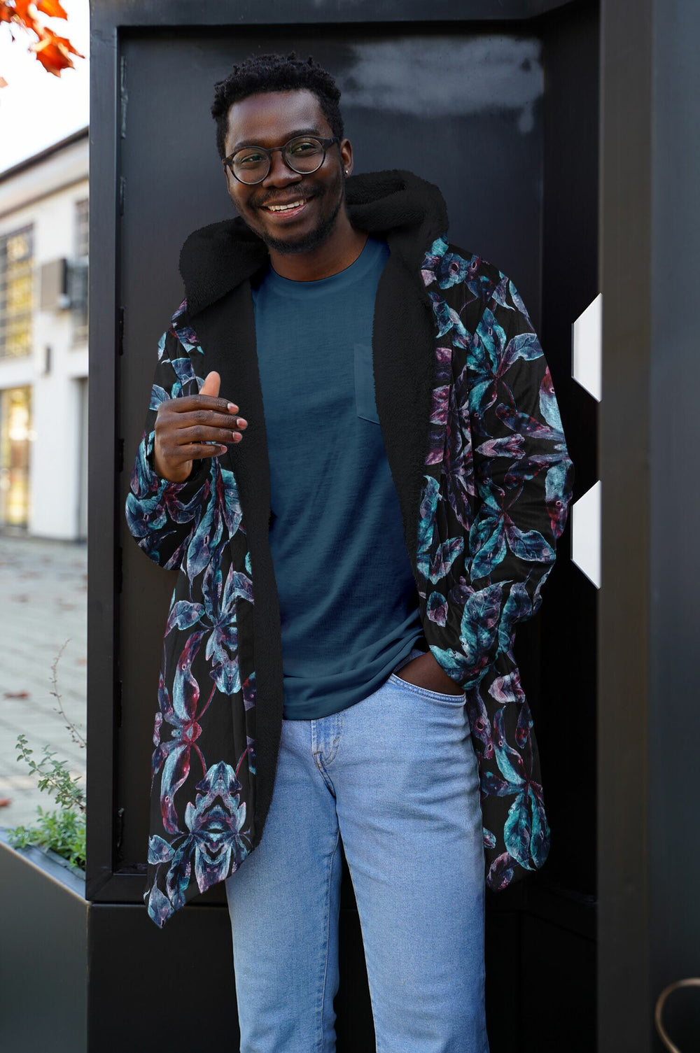 Dark Tropics Cuddle Cloak | Unisex Minky Sherpa Lined Hooded Coat | Women and Mens Festival Coat | Mountain Fashion