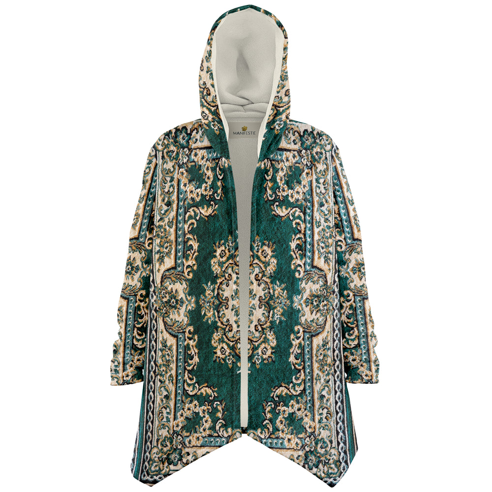 Emerald Green Persian Carpet Cuddle Cloak | Unisex Minky Sherpa Hooded Coat | Women and Mens Festival Coat | Mountain Fashion