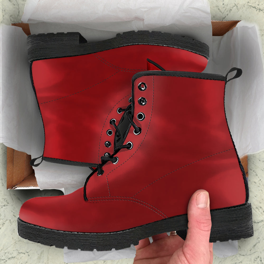 Crimson Red Memory Foam Boots | All Season Lace Up Boots | Vegan Leather Combat Boot
